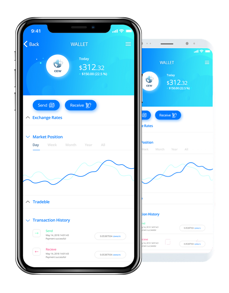 The Cewnote platform will be avaible on mobile phone, and will present alot of features. Including a mobile wallet. We will make sure you can use our platform anytime and anywhere!